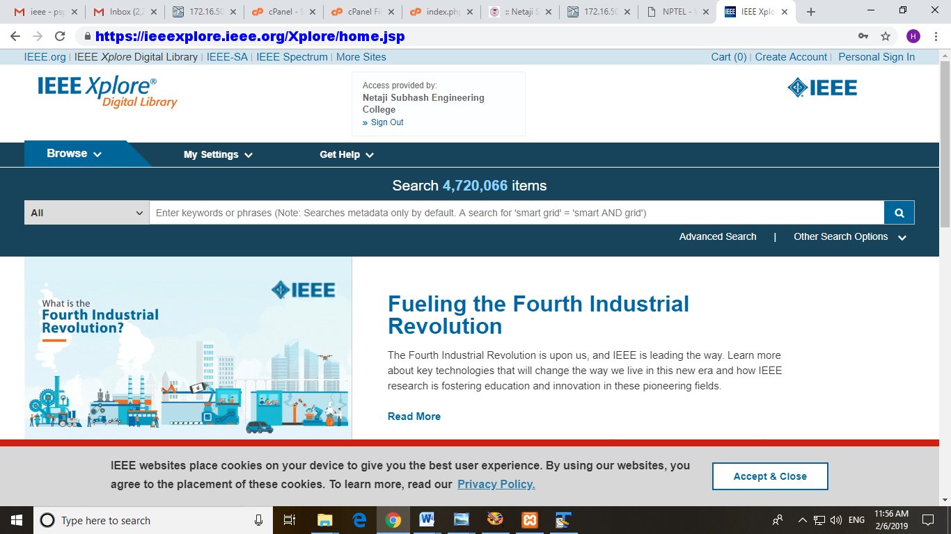 URL: https://ieeexplore.ieee.org/Xplore/home.jsp No Password is Required from College LAN |