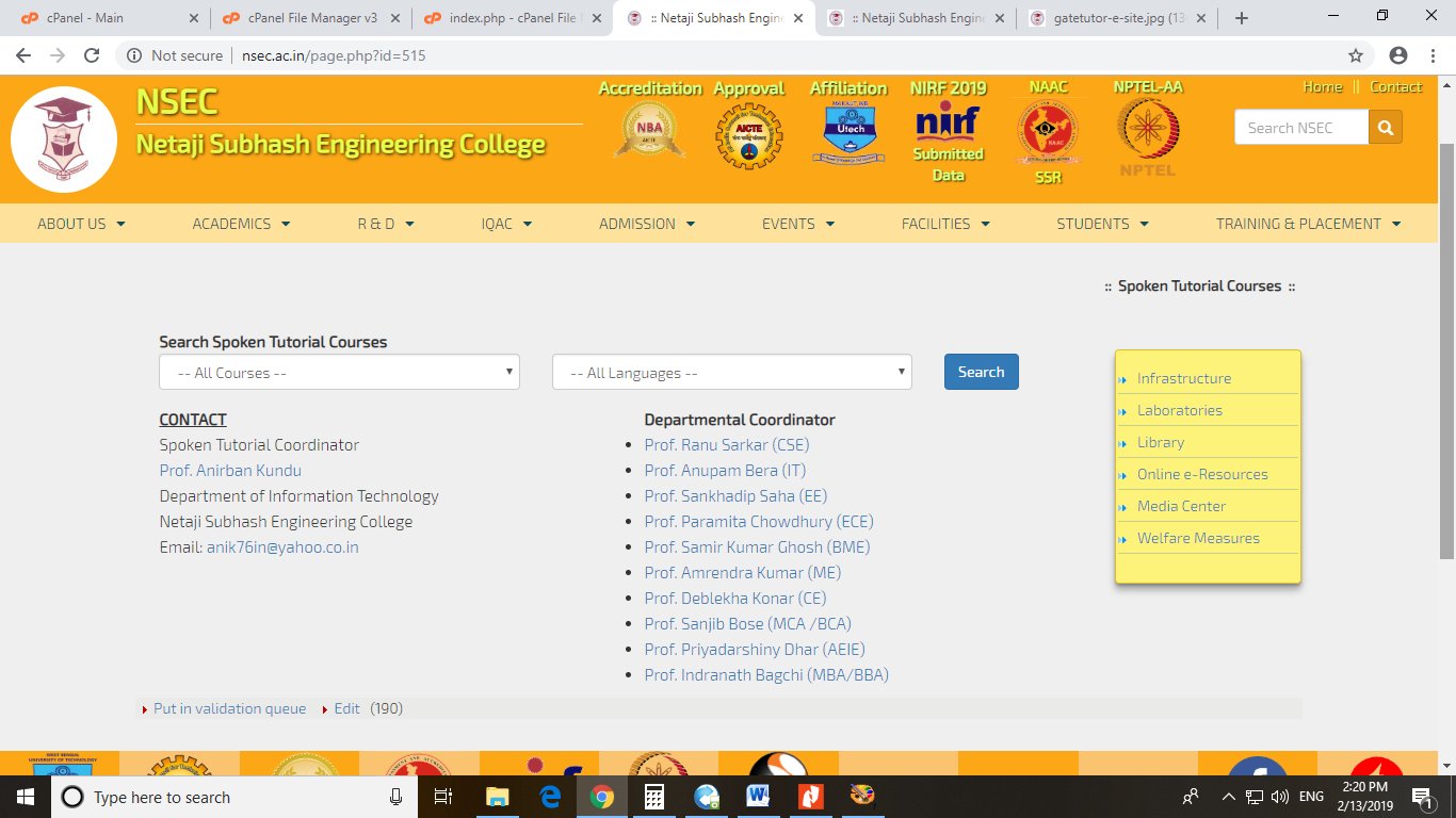 URL: http://www.nsec.ac.in/page.php?id=515/ The Spoken Tutorial project is the initiative of the "Talk to a Teacher" project of the National Mission on Education through ICT, launched by MHRD, Govt of India. |